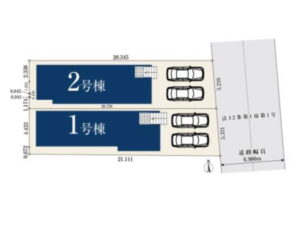 | 土地面積 | 1号棟:109.04㎡(32.98坪) 2号棟:106.70㎡(32.27坪) |